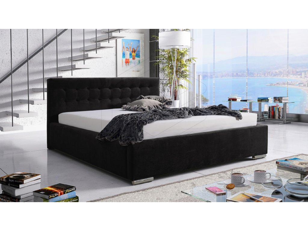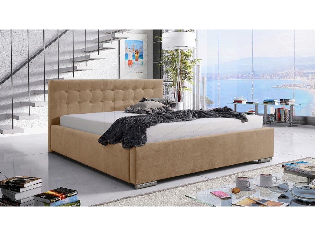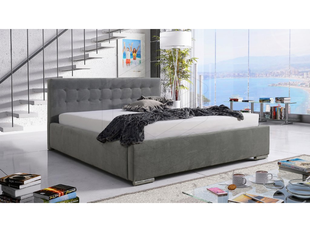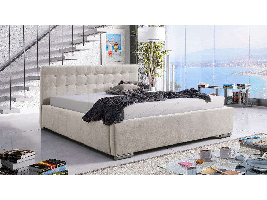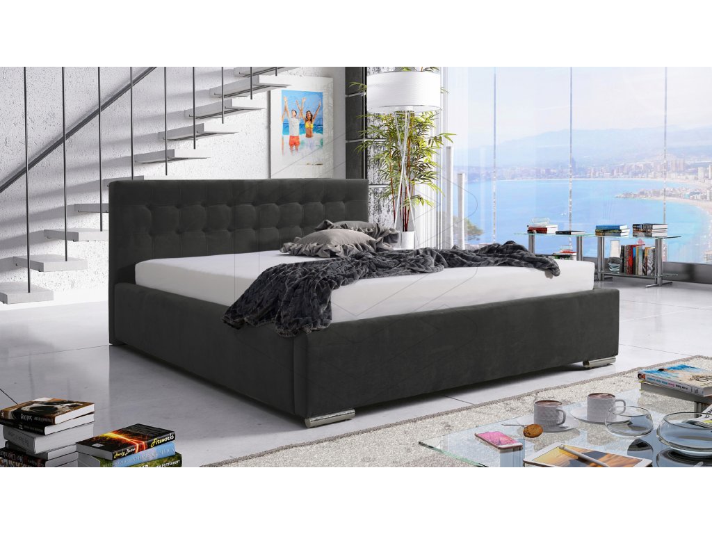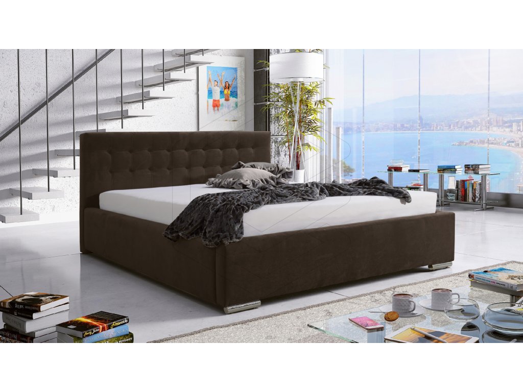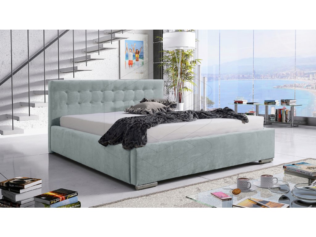 Čalouněná postel z kolekce AZUA s lamelovým roštem, prošívaným čelem a s možností úložného prostoru. Pevný rám postele Vám zaručí vysokou stabilitu a pevnost. Postel je zakončena odolnou látkou Trinity.