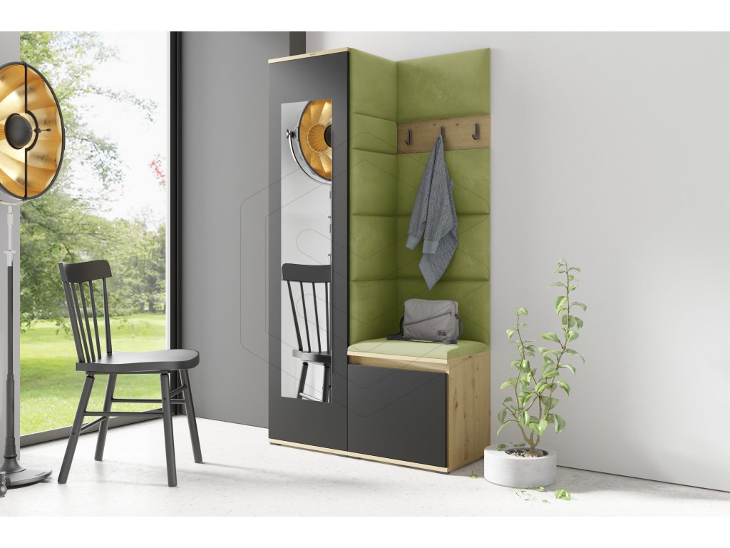 Předsíňová čalouněná stěna ARIZONA 13 - Dub Artisan s černou/Olivová 2312