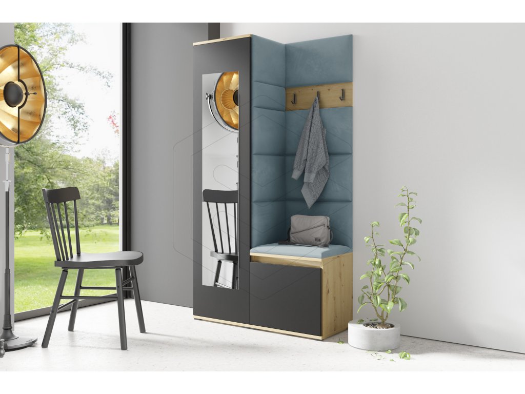 Předsíňová čalouněná stěna ARIZONA 13 - Dub Artisan s černou/Světlá modrá 2322