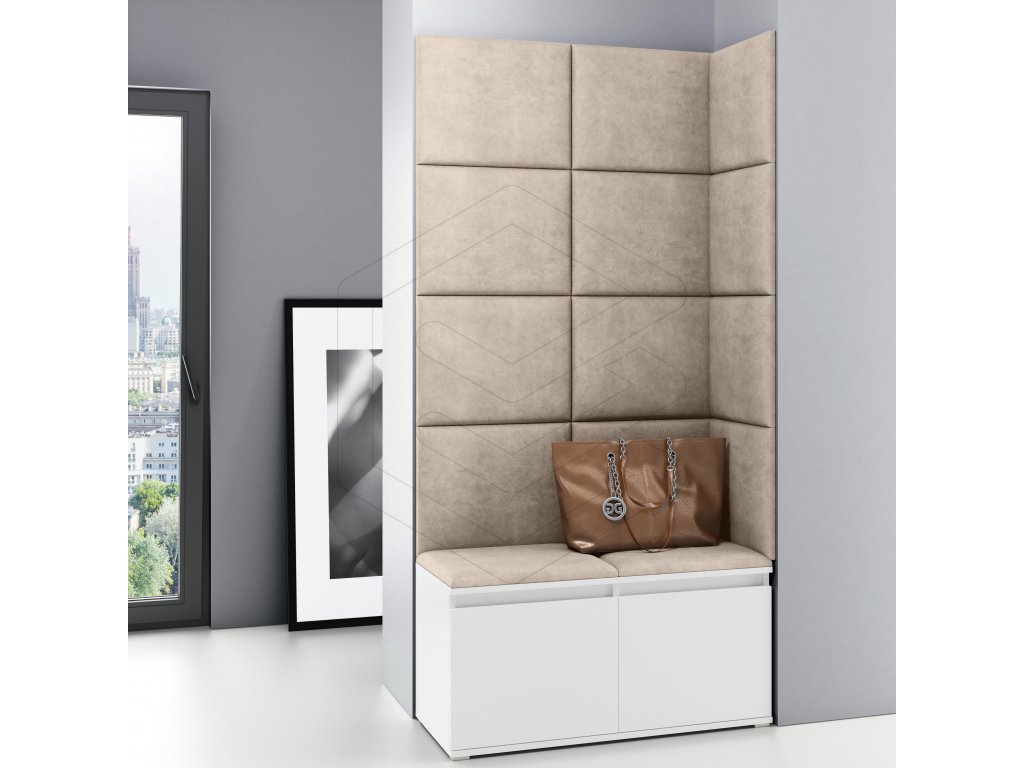 Předsíňová čalouněná stěna BONE 2 - Bílá/Světlá béžová 2303