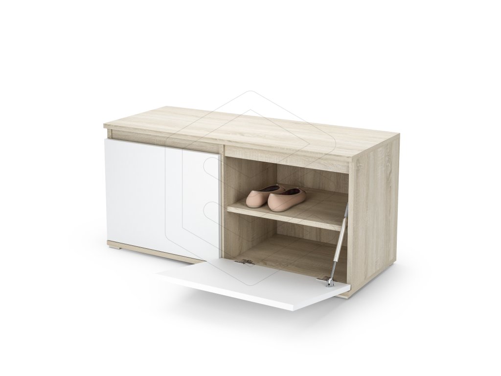 Rozměry botníku naleznete na poslední fotografii v galerii produktu. Dvířka botníku jsou opatřena plynovým pístem, který umožňuje plynulé a snadné otevírání a zavírání. |