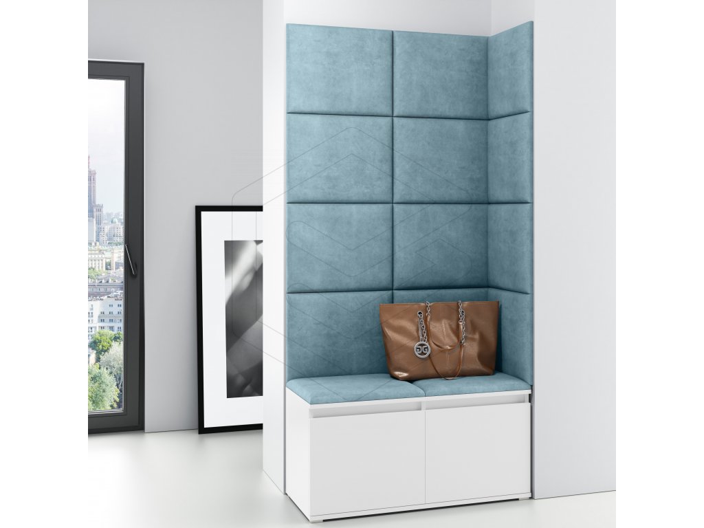 Předsíňová čalouněná stěna BONE 2 - Bílá/Světlá modrá 2322