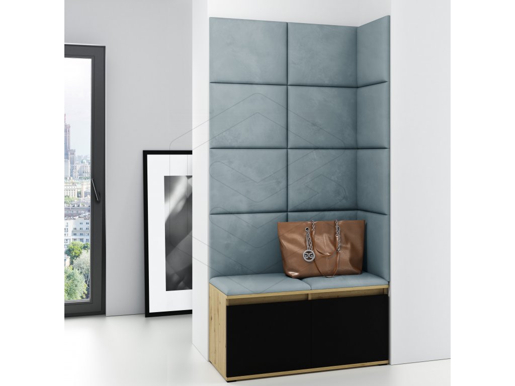Předsíňová čalouněná stěna BONE 2 - Dub Artisan s černou/Světlá modrá 2322
