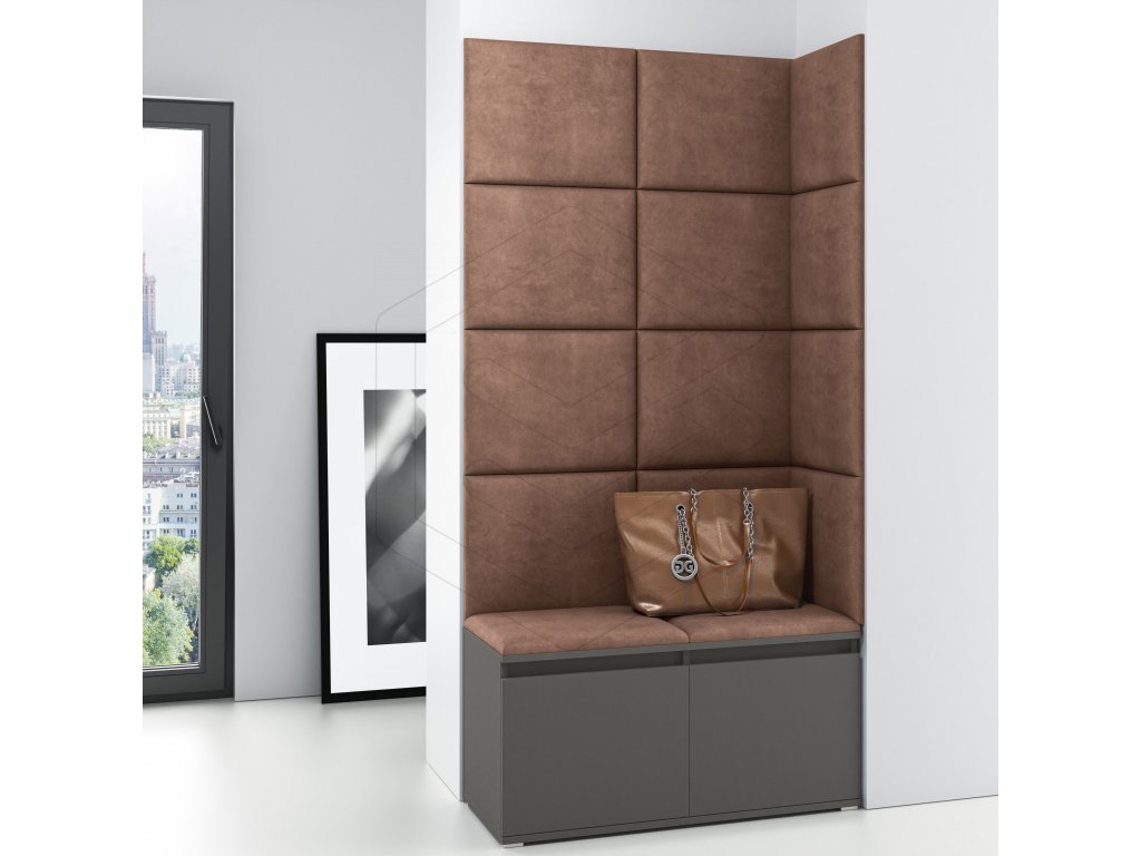 Předsíňová čalouněná stěna BONE 2 - Grafit/Hnědá 2307