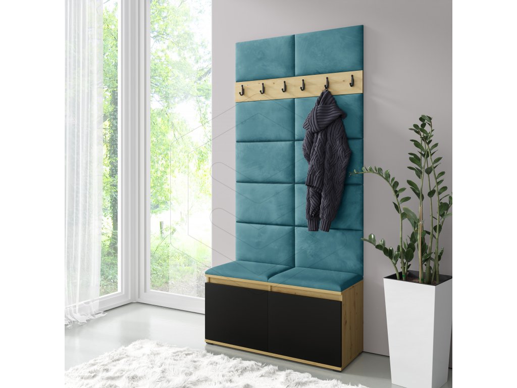 Předsíňová čalouněná stěna DAORI 1 - Dub Artisan s černou/Azurová 2313