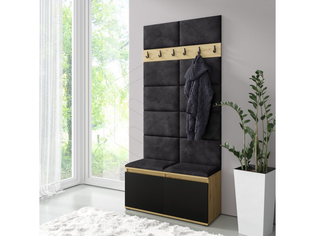 Předsíňová čalouněná stěna DAORI 1 - Dub Artisan s černou/Černá 2316
