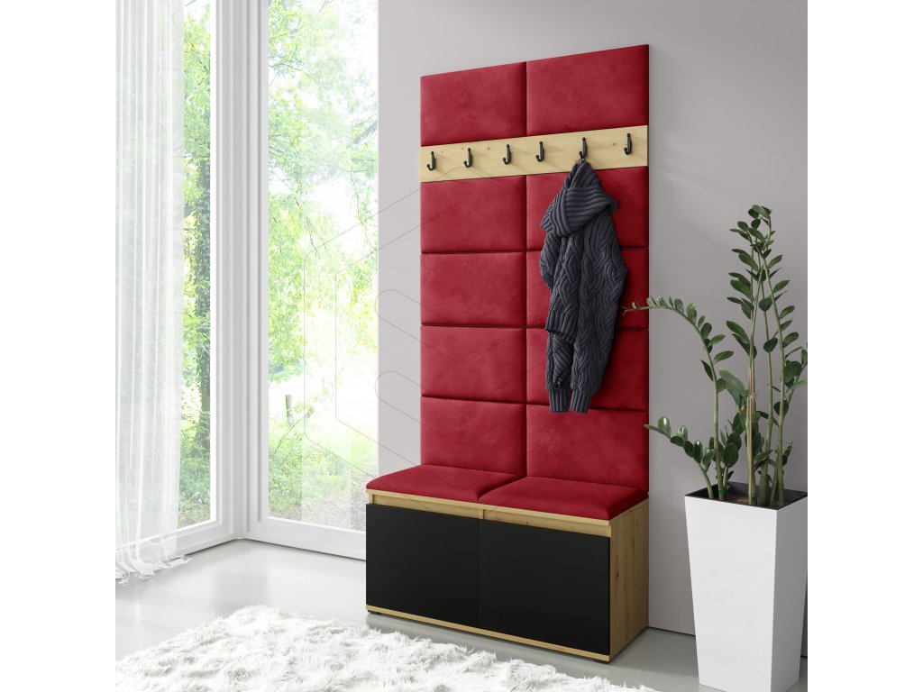 Předsíňová čalouněná stěna DAORI 1 - Dub Artisan s černou/Rubínová 2324