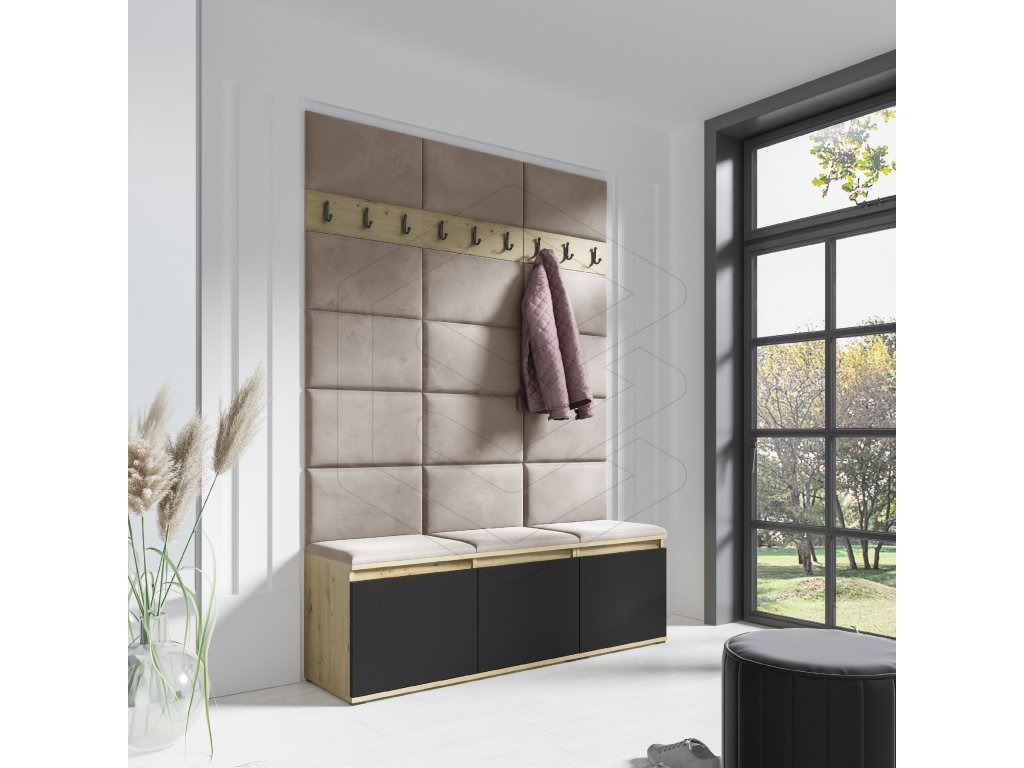 Předsíňová čalouněná stěna FIO 6 - Dub Artisan s černou/Světlá béžová 2303