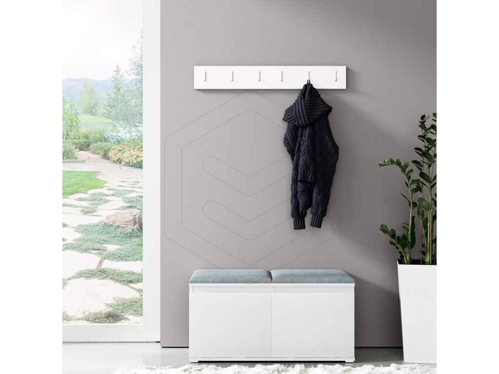 Přinášíme Vám dokonalou předsíňovou stěnu s moderním a estetickým designem pro Váš domov, která je kompletní s věšáky a botníkem. Tato stěna je rovněž vybavena čalouněnými panely na zadní straně, které nejen dokonale doplňují celkový vzhled, ale také představují zcela nový prvek na českém trhu.