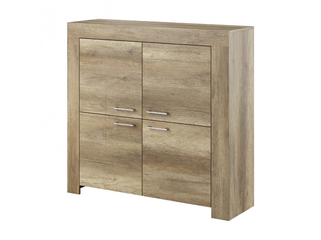 Komoda je široká 120 cm, nabízí praktický úložný prostor v podobě jedné uzavřené police, která je v dolní části komody horizontálně rozdělena.