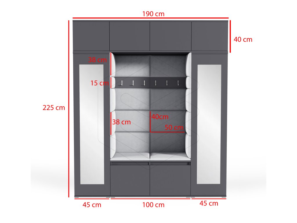 | Rozměr nadstavby šatní skříně: | 40 x 45 x 40 cm |