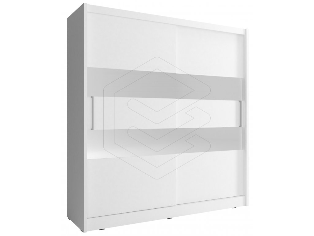 Šatní skříň ze stejnojmenné řady JAMA s posuvnými dveřmi a zrcadlem. Nábytek nabízí spoustu praktického úložného prostoru. Skříň je vyrobena z kvalitního laminátu v dekoru bílá zakončená odolnou ABS dýhou.
