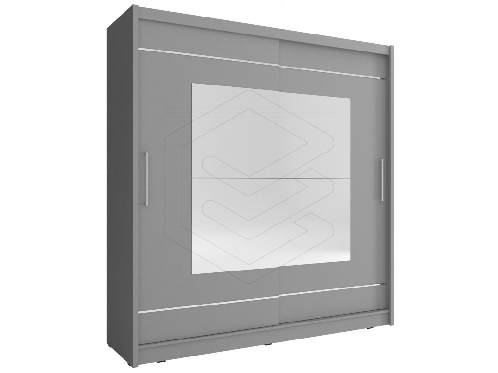 Šatní skříň ze stejnojmenné řady JAMA s posuvnými dveřmi a zrcadly. Nábytek nabízí spoustu praktického úložného prostoru. Skříň je vyrobena z kvalitního laminátu v dekoru grafit zakončená odolnou ABS dýhou.
