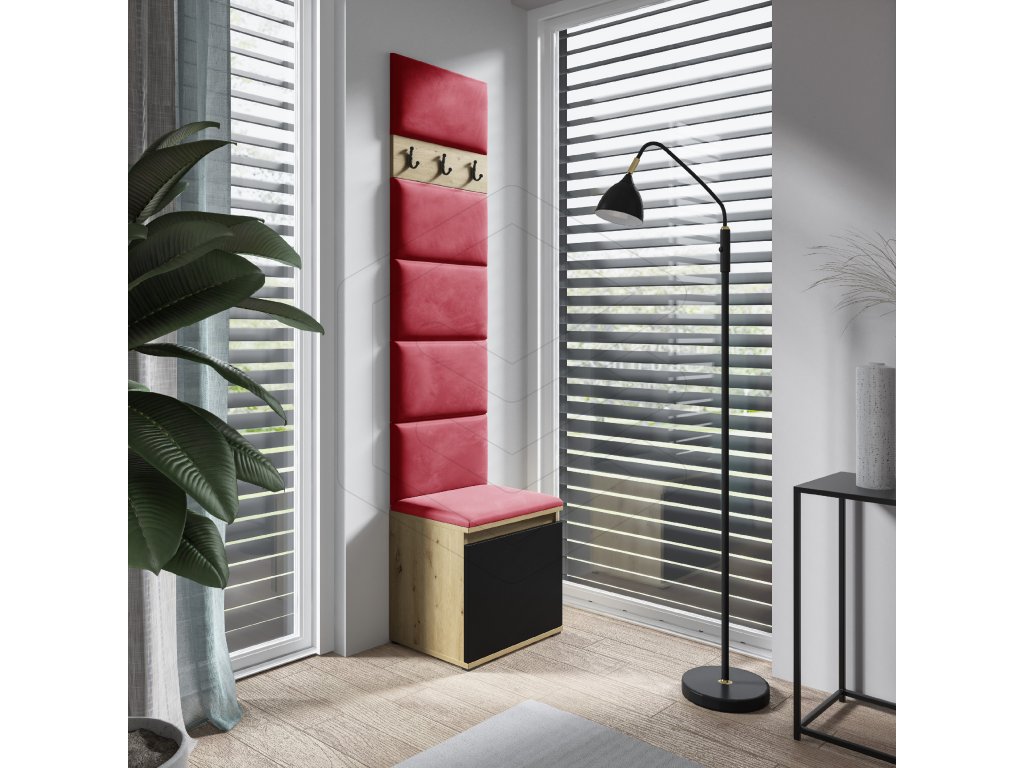 Předsíňová čalouněná stěna ZAC 7 - Dub Artisan s černou/Červená 2309