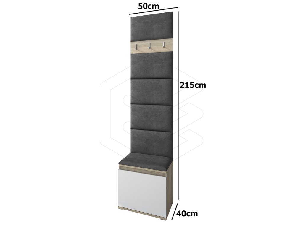 Přinášíme Vám dokonalou předsíňovou stěnu s moderním a estetickým designem pro Váš domov, která je kompletní s věšáky a botníkem. Tato stěna je rovněž vybavena čalouněnými panely na zadní straně, které nejen dokonale doplňují celkový vzhled, ale také představují zcela nový prvek na českém trhu.
